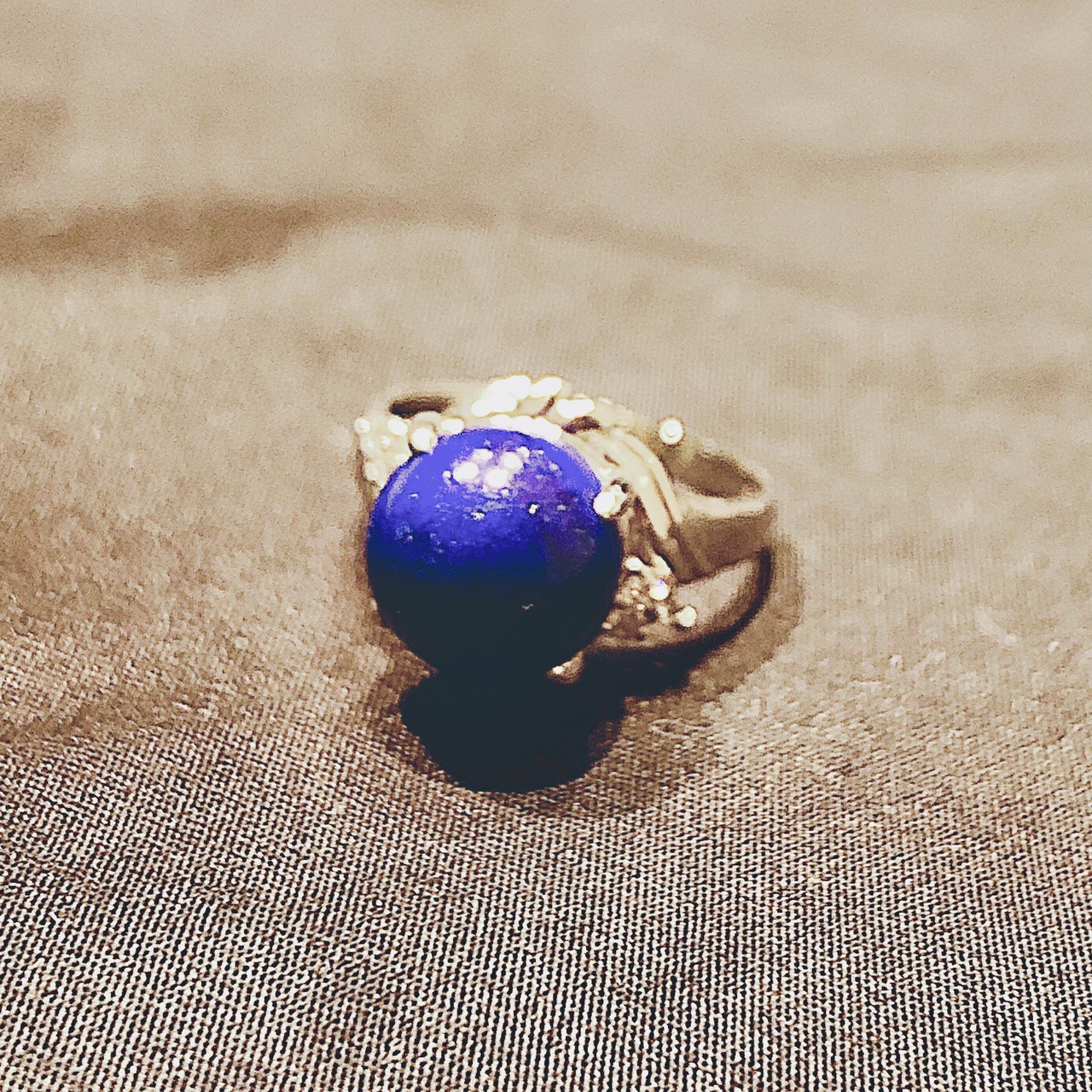 青色玉付銀色リングの石合わせ、サイズ直しが完了しました。