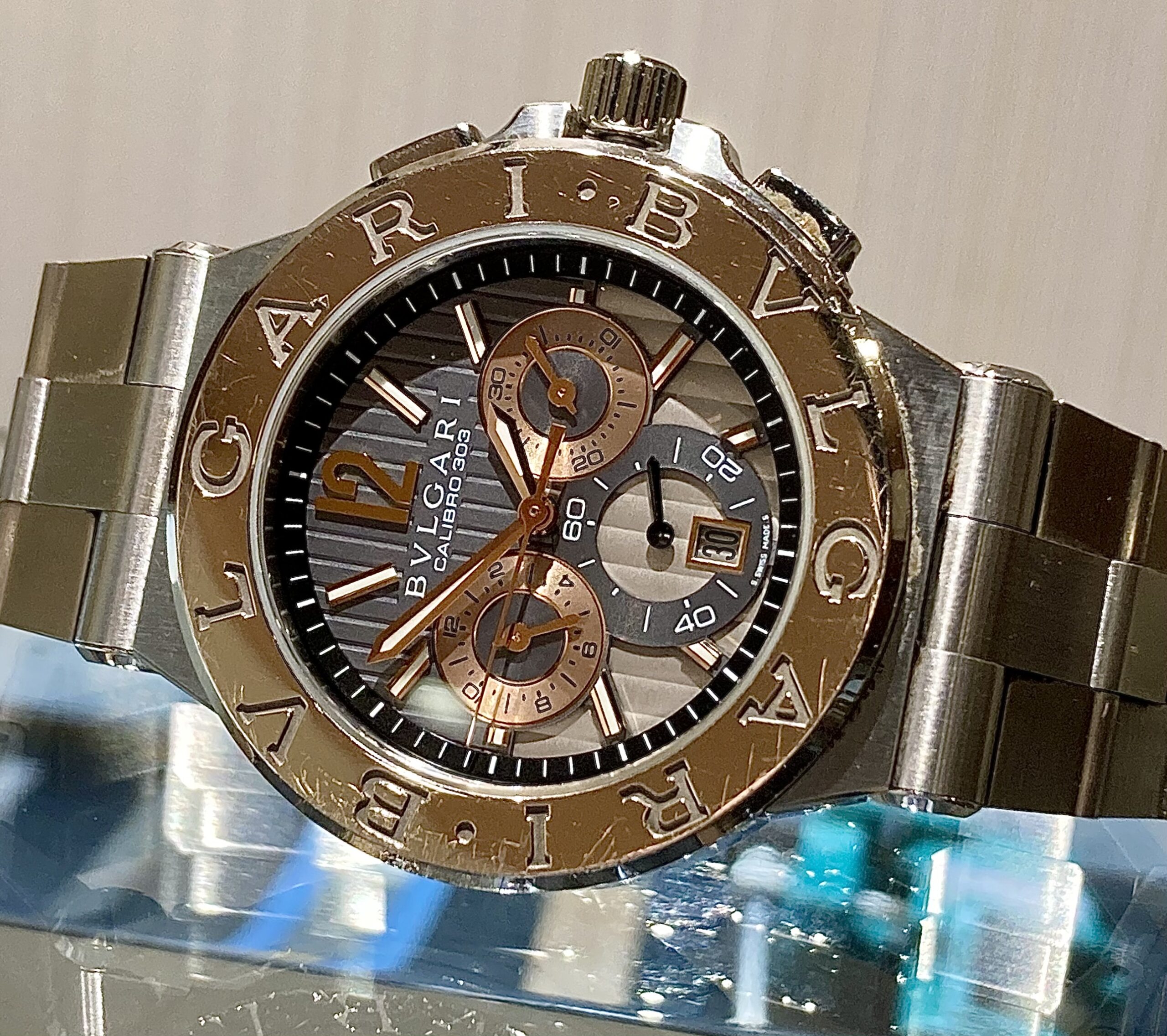 今回こちらのジャンニ ヴェルサーチ のお時計をお預かり致しました。