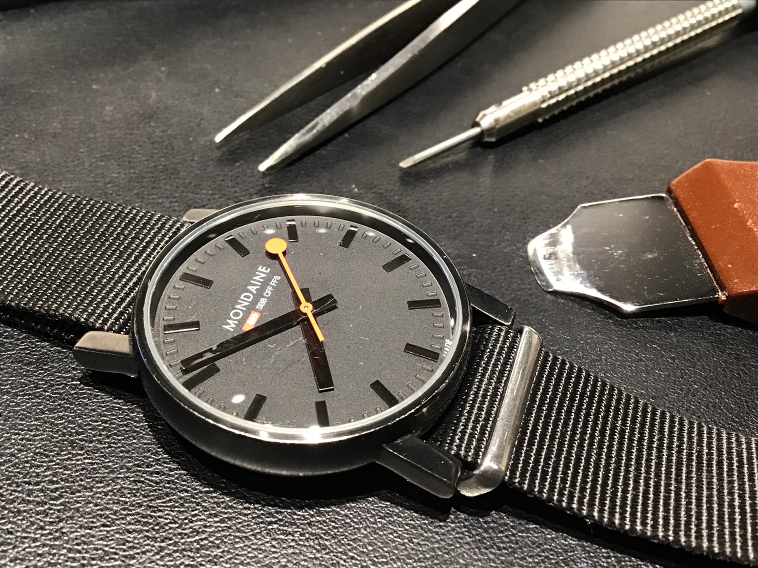 セラミックバンドから、革バンドへの交換を承りました。