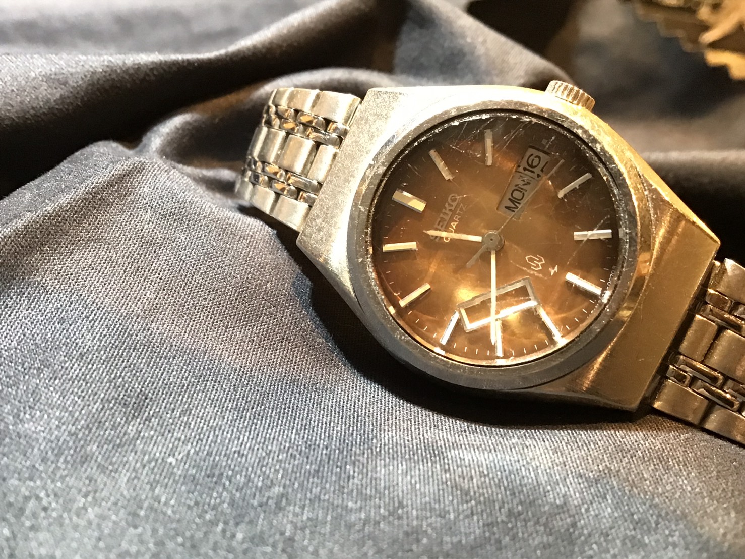 セイコークォーツのデイデイトの枠が外れてしまったのでお預かり致しました。