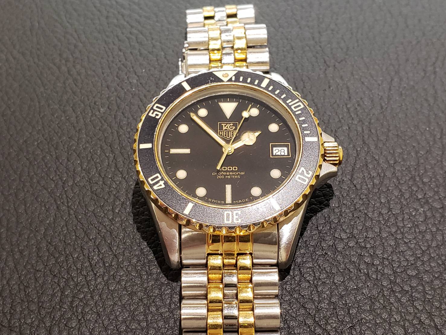 タグホイヤープロフェッショナルでございます。 こちらは防水テストでお預かり致しました! 当店では電池、パッキン交換とセットでのご案内をしております。 水に時計をさらす機会が多い方などは電池交換の際にぜひご検討下さい!