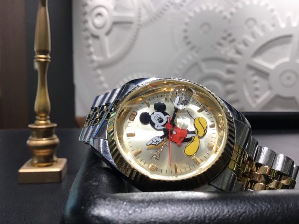 この度お預かりしました時計は、キャラクターウォッチです。 可愛らしいデザインですが、どこか高級感もあります。 頂き物でベルトの調整をしてほしいとお持ちいただきました。