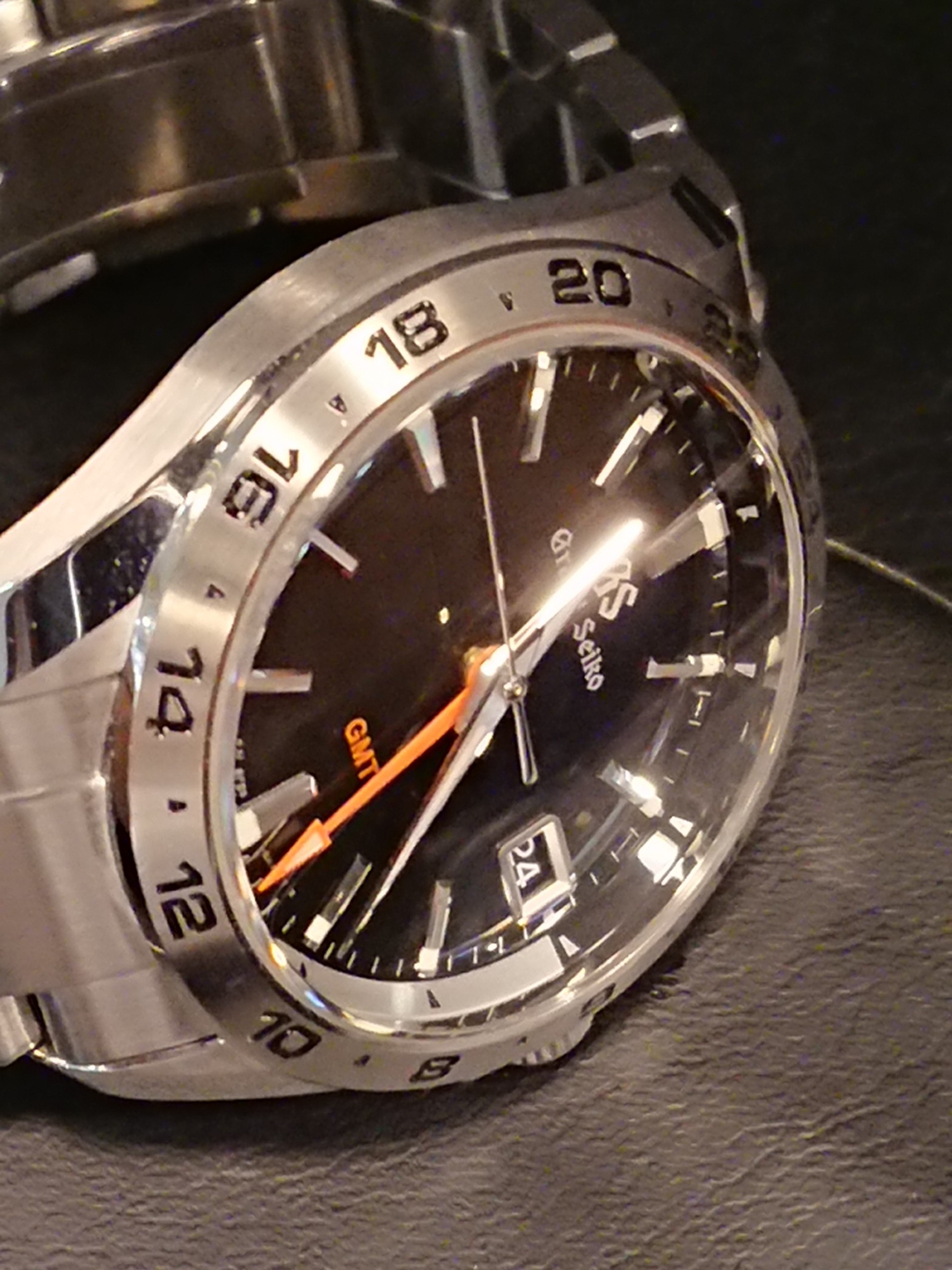 こちらは、最近発売されたばかりのモデル。24時表示のベゼルや、真っ赤なGMT針が時計にキリッとした表情を与えます。グランドセイコーは、ややもすればシンプル過ぎると仰る方もいらっしゃいますが、ほんの少しアクセントカラーが入るだけで、グッと引き締まります。