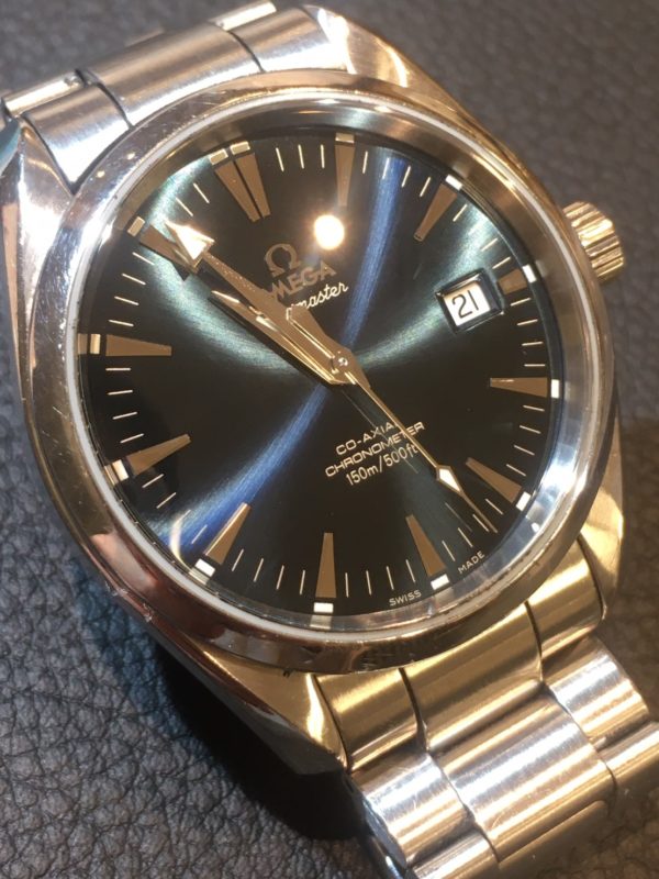 この度、お修理でお預かりいたしました時計は、オメガのシーマスターでございます。 鮮やかな深い青色の文字盤がとても綺麗でカッコイイですね!光の当たり方でまた色が変わり、すごく高級感があります。