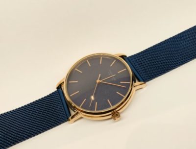 今回お預り致しました時計はムーシエのクォーツ時計です。 ケースやインデックス、針は金色で統一されており、際立たせるように黒文字盤が素敵で更にベルトが紺色でシンプルながらもエレガントな時計です。 時刻ずれを起こしていた為、打ち直しさせて頂きました。 お直しいたしましたがまだズレが生じてくる場合、ムーブメントに問題がある可能性が高い為、オーバーホールをご検討ください!
