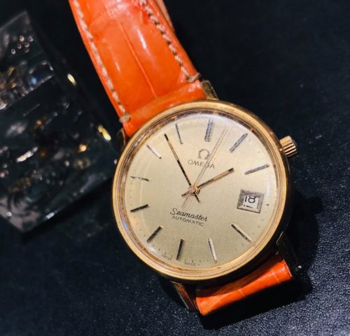 【OMEGA 文字盤回転】 今回OMEGAのお時計は文字盤回転直しでお持ち込みいただきました。オレンジのベルトが鮮やかな素敵な時計です。