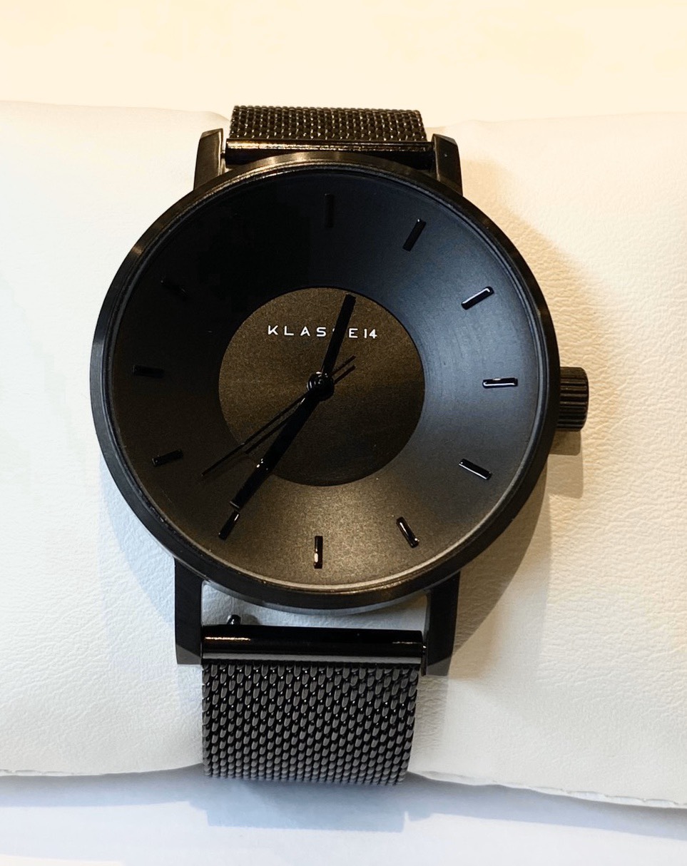 今回お預かりしました時計はKLASS14の腕時計です。 KLASS14の時計はシリーズごとにデザイナーが異なり、それぞれが考え抜かれたコンセプトで作られています。 その為か男女兼用のデザインが多く、シンプルの中に秘めた遊び心が絶妙なデザインが特徴です。
