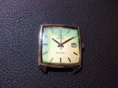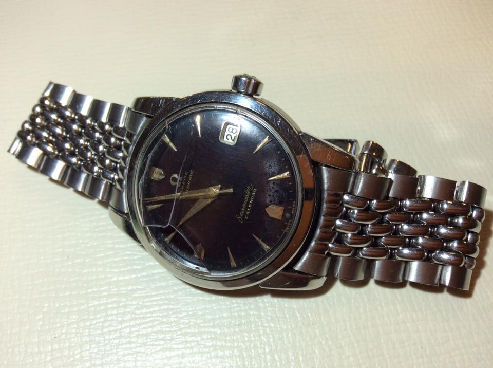 今回、お預りしましたお時計は「オメガ シーマスター」のお時計です。 風防にヒビが入っており、湿気混入の心配があるとのことで、交換させていただきました。