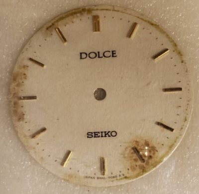 【SEIKO ドルチェ 文字盤交換】 この度、ご依頼いただいたのは文字盤のお修理です。ご実家を整理していたところ、引き出しから懐かしい時計が出てきたのだとか。失くしたと思っていたので見つかって喜ばれていましたが、動くようにして、尚且つ文字盤の変色を綺麗にしたいとお持ちくださいました。 お客様の腕元であの頃の想い出とともに時を刻み始めてくれ、喜んでいただけました。